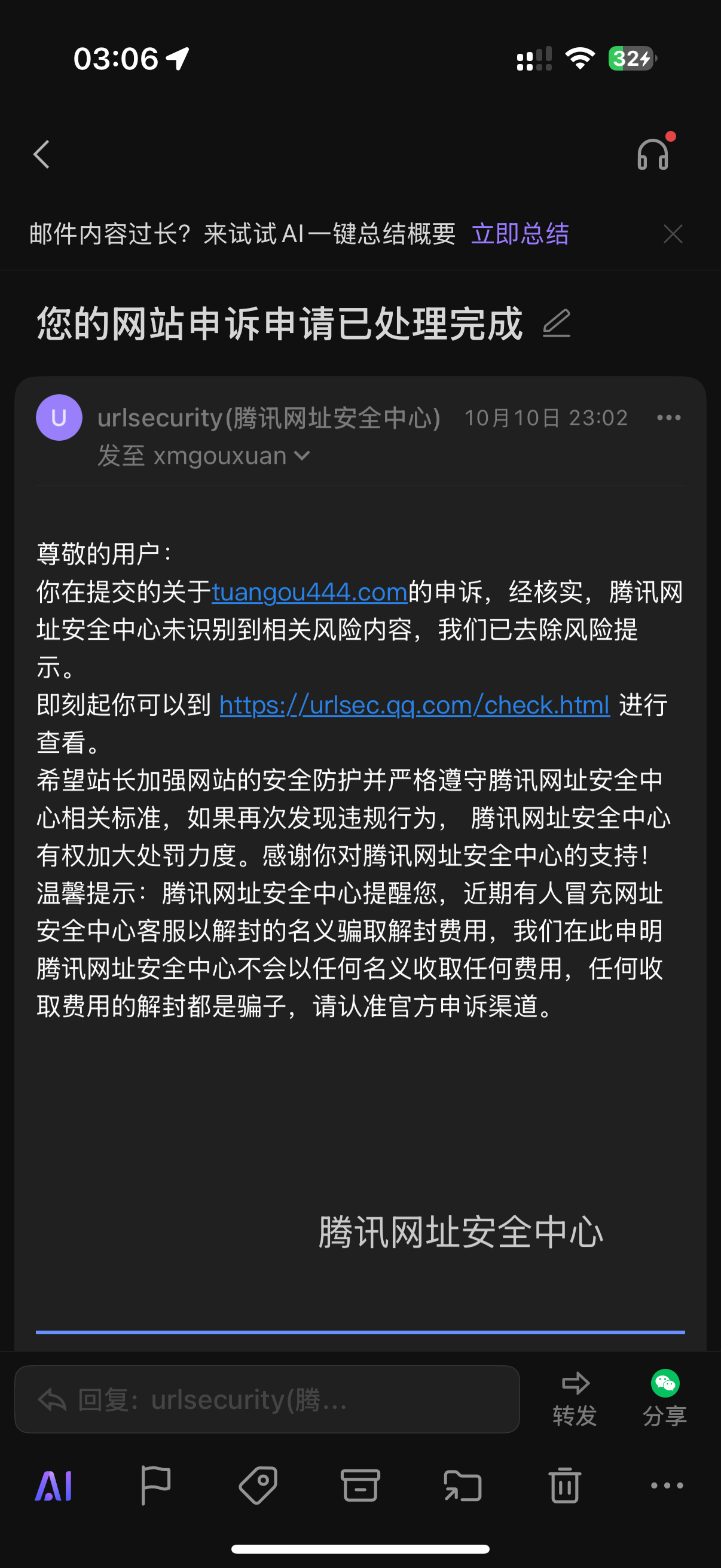 域名 tuangou444.com 为厦门勾选电子商务有限公司正规备案域名,备案号:闽ICP备20012124号-4,现已完成全面整改,已删除所有外链。我们保证无诱导分享、分销、欺诈、虚拟交易、色情、赌博、游戏、红包等违规内容,同时已针对微信外链规则进行内部培训,承诺不再触及。恳请核实并解除拦截。