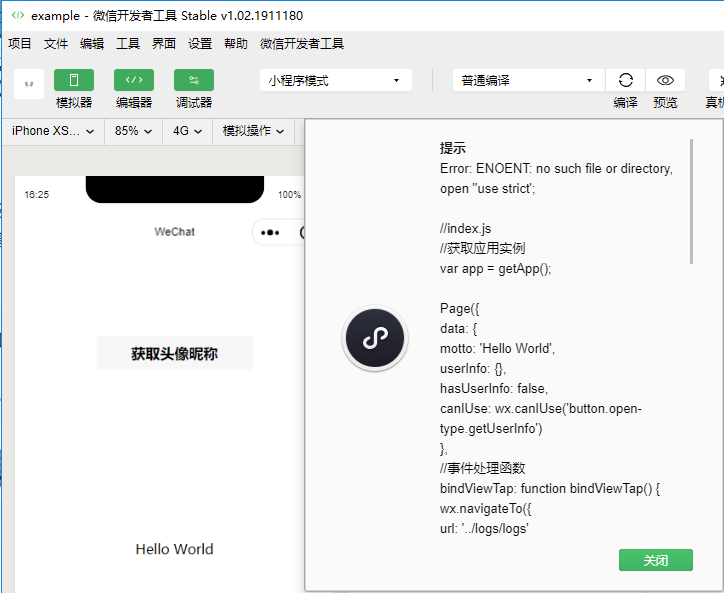问题:更新开发者工具后,项目预览报错no such file or derectory,open"use strict"