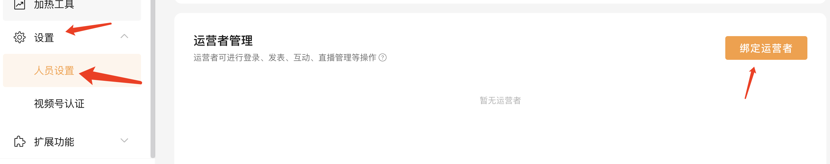 需要视频号管理员登陆视频号助手(https://channels.weixin.qq.com/),设置里面添加运营者。