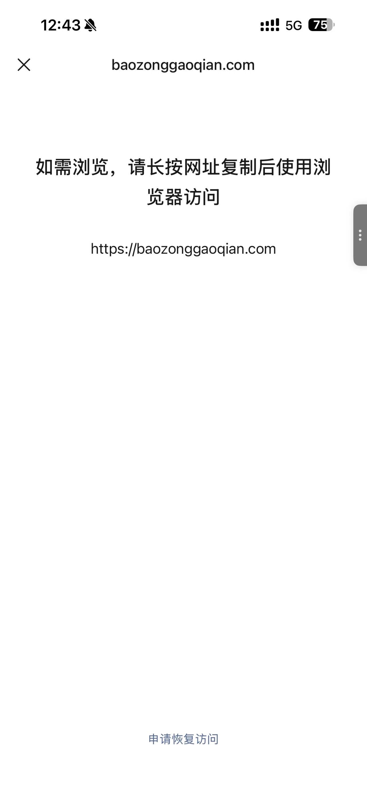您好,网站链接所有地址在微信内无法正常打开(浏览器访问正常),经自查及腾讯安全检测均未发现风险,访问受限已直接影响用户体验及业务推广。已通过【腾讯安全-网址安全中心】检测(检测结果:未发现危险)。还请尽快帮忙解除一下! 网址:https://baozonggaoqian.com