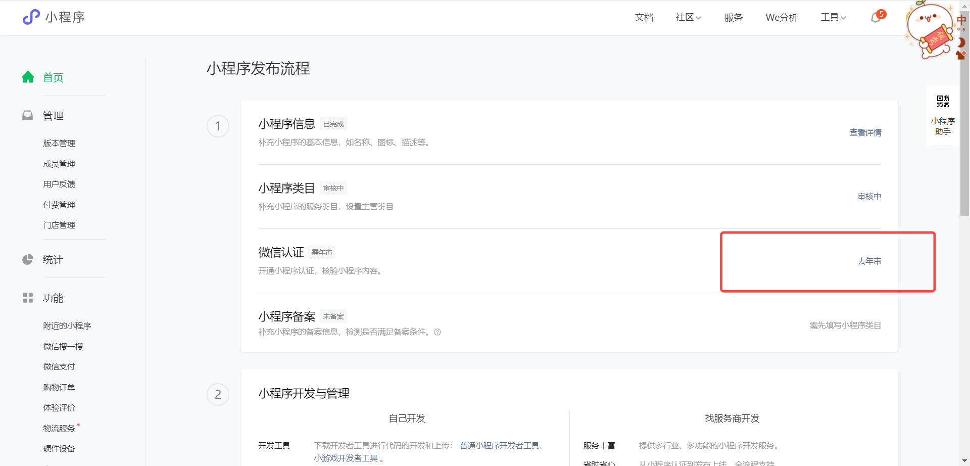 小程序原主体是A,现在要变更成B主体,但是后台无法迁移,提醒要做年审认证,能否直接用B主体做认证呢?或者直接迁移。