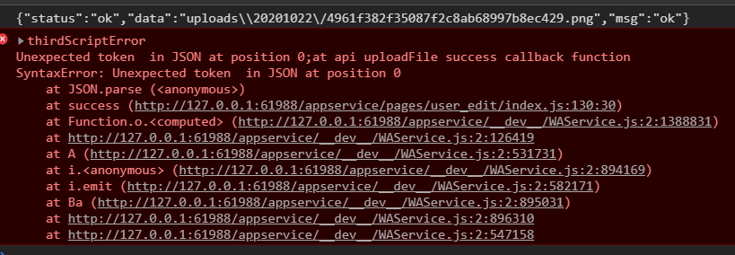 Unexpected token in JSON at position 0;at api uploadFile success callback function