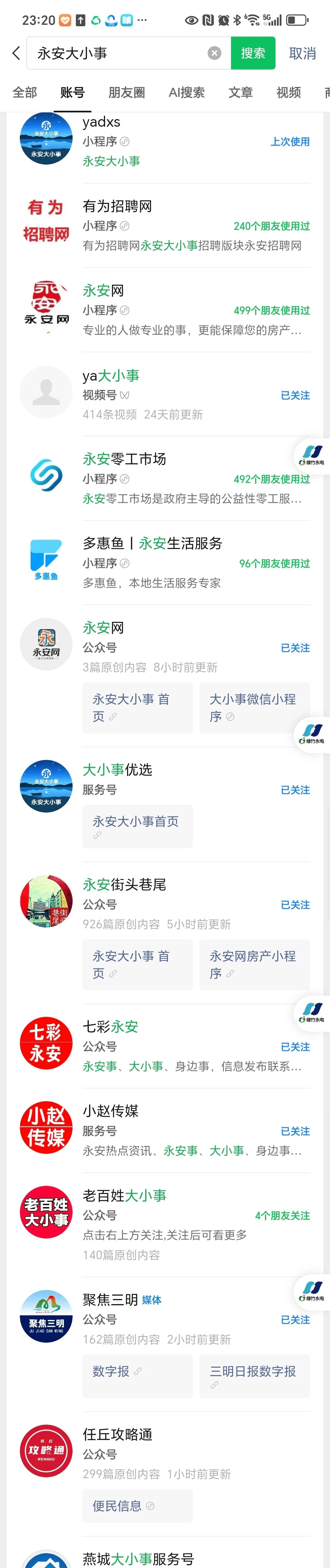 永安大小事有商标,不允许使用,该名字 订阅号被强制改名为ya大小事, 迁移后,现在搜索不到
