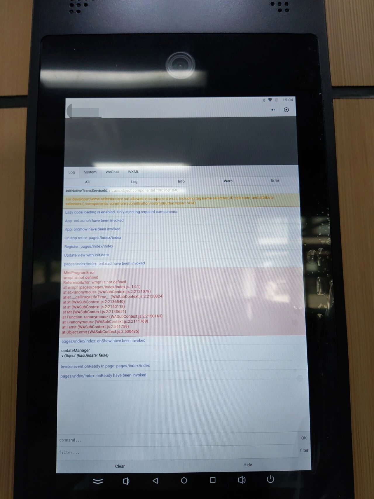 在硬件设备中,APP启动小程序后(体验版),小程序中 wmpf is not defined ?
