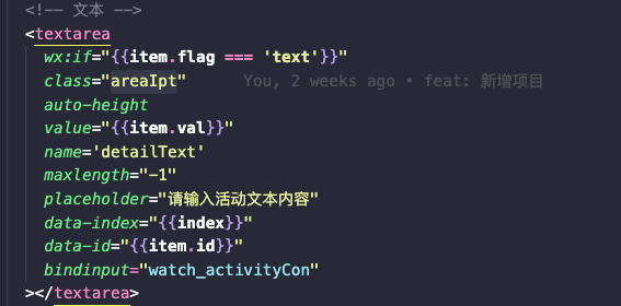 // wxml<textarea class="textareaIpt" bindlinechange="lineChange" style="height: {{textHeight}}rpx;" disabled="{{true}}" placeholder="请输入内容" auto-height="{{true}}" value=""></textarea>// jslineChange (event) {this.setData({textHeight: event.detail.heightRpx})},// css.textareaIpt {height: auto;font-size: 28rpx;font-family: PingFangSC-Regular,PingFang SC;font-weight: 400;color: #555555;line-height: 42rpx;text-align: justify;border: 1rpx solid transparent;overflow-y: visible;}来个代码片段