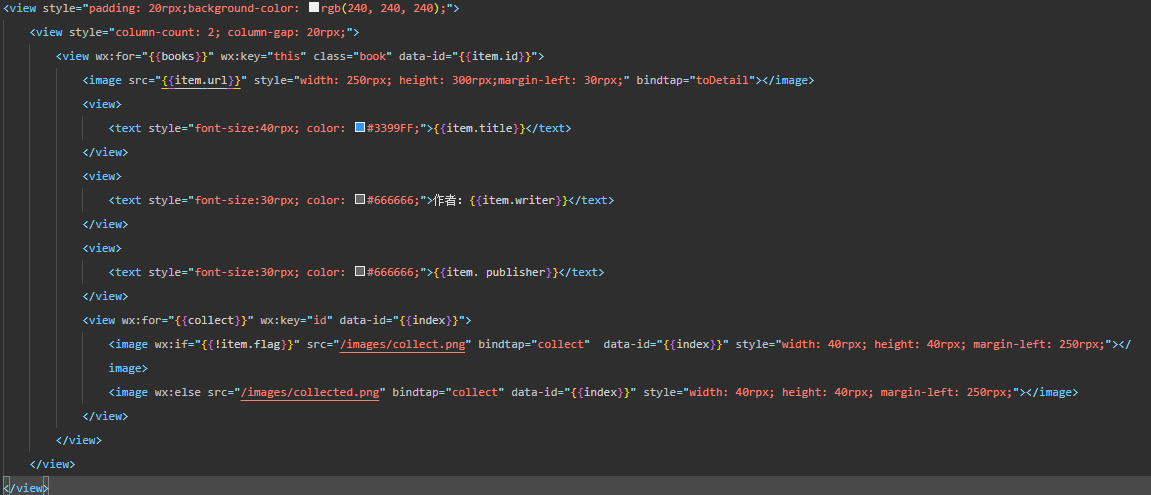 collect: { "黄昏里的男孩": true, "飞鸟集": true }wxml 里循环 books 时这一个
