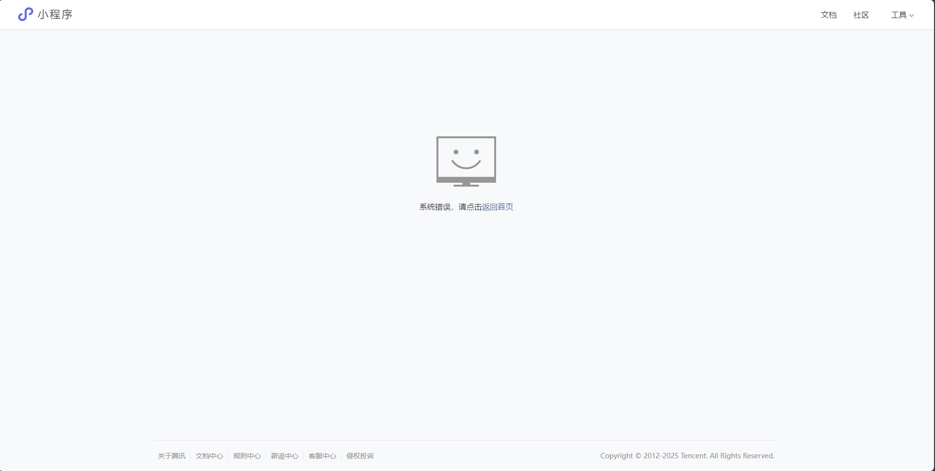 点击小程序发布流程页面 -> 小程序信息栏->去填写 跳转页面 页面显示系统错误,已更换多个浏览器操作都是同样显示,没有APP_ID,上面提供的APPID是账号名