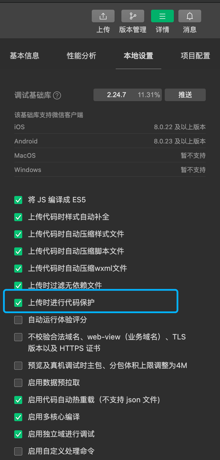 在开发者工具里,可以选择代码保护