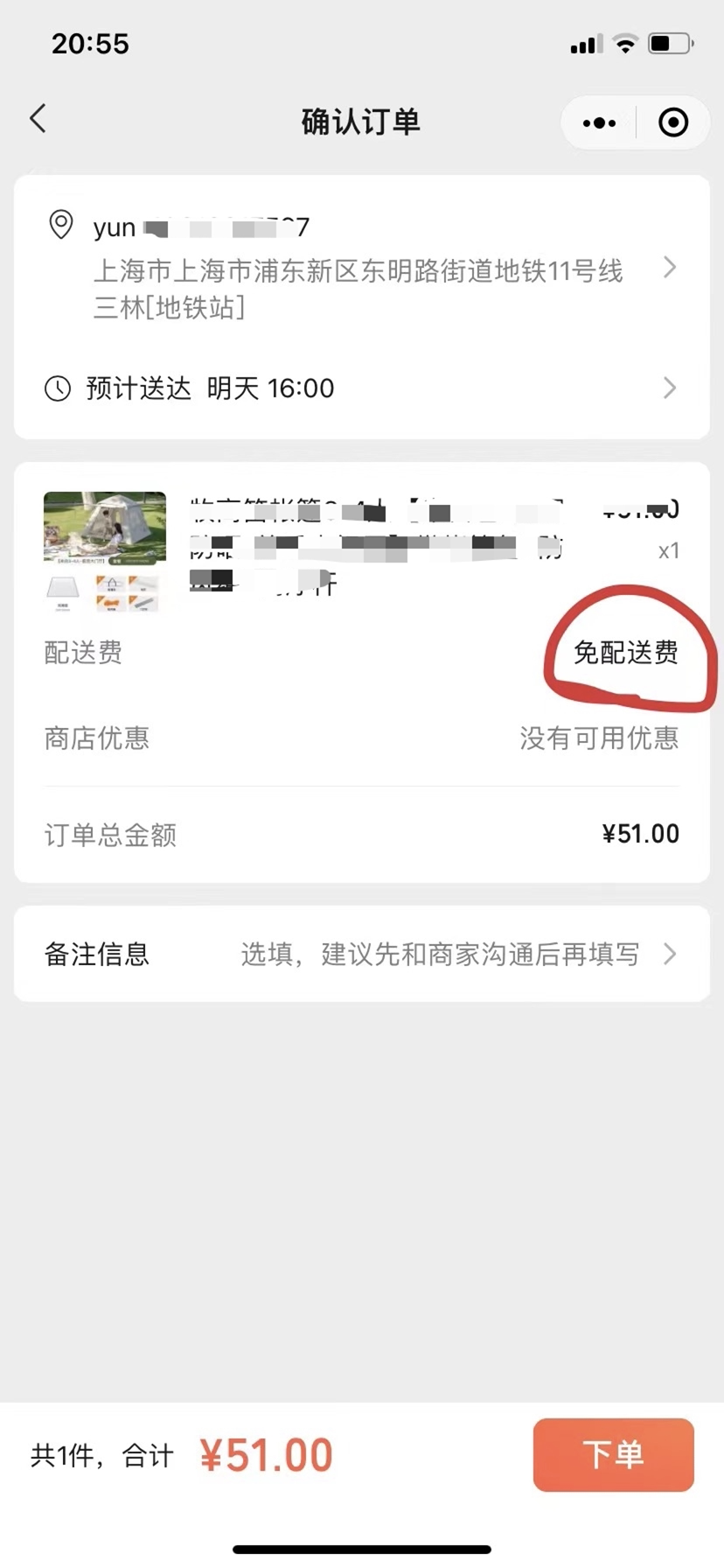 最近在用微信小商店试水户外设备租借,设置了一个同城配送的运费模版(配送费96元起),但是今天用户下单都直接提示“免配送费”了,排查下来发现是没达到起送金额不提示运费。