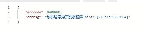 "errmsg": "该小程序为开发小程序 hint: [3VChDa05911543]"