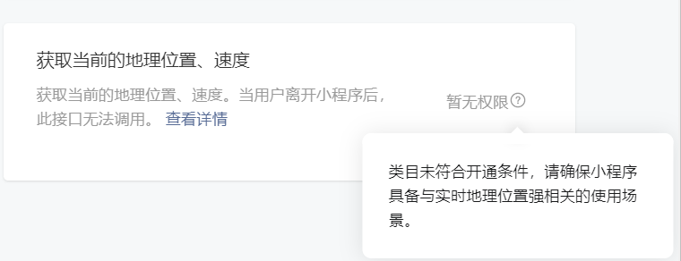 暂只针对国内主体如下类目的小程序开放,需要先通过类目审核,再在小程序管理后台,「开发」-「开发管理」-「接口设置」中自助开通该接口权限。 接口权限申请入口将于2022年3月11日开始内测,于3月31日全量上线。并从4月18日开始,在代码审核环节将检测该接口是否已完成开通,如未开通,将在代码提审环节进行拦截。