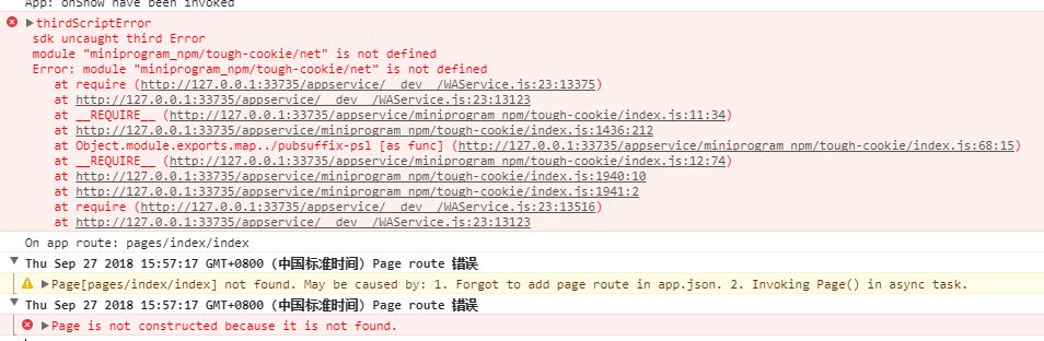 这里定位了一下你的问题,是 tough-cookie 依赖了 nodejs 内置模块 net 的原因。目前 npm 构建并不能处理这种内置模块,所以会报找不到 (npm 这里的 require 会先找当前文件内有没有定义,再找有没有对应的 npm 包,最后再找当前目录下有没有对应的模块)。