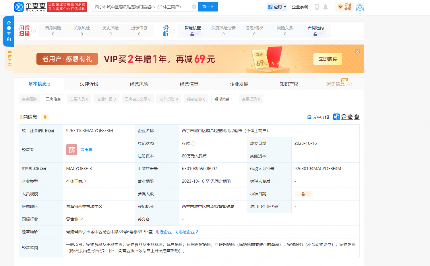 主体:西宁市城中区萌爪哒宠物用品超市(个体工商户) 希望有关人员加急审核