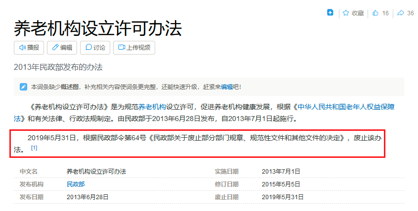 养老院开通微信附近小程序,需要提供养老机构建立许可证,可是这个证数早就在2019年5月31日,根据民政部令第64号《民政部关于废止部分部门规章、规范性文件和其他文件的决定》,废止该办法。