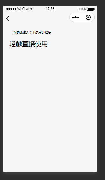 如图创建试用小程序后(刚创建好,还未进行主体认证),掉起服务商组件打开小程序时小程序列表为空。