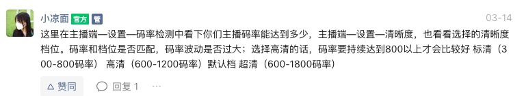 我刚刚做了一趟小程序直播,视频质量不太好。之前我还不太了解小凉面姐姐说的这些。下趟直播我试试根据码率来调清晰度