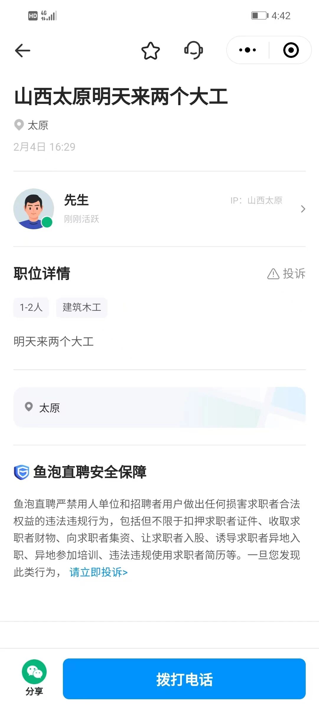 鱼泡直聘小程序有大量违规招聘信息,都是缺少人社部规范招聘信息格式中的六要素(人社部规范通知中要求发布招聘信息应包含用人单位基本情况、招聘人数、招聘条件、工作内容、工作地点、基本劳动报酬等要素,应标注有效期限或及时更新),多次举报,无人处理,请问鱼泡直聘是不是跟腾讯平台相关审核部门有利益相关?