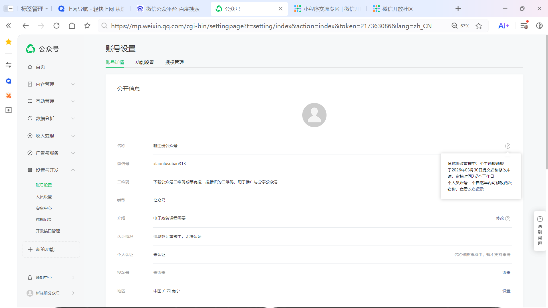 新注册公众号昵称修改不成功,为什么没显示可以再修改或者不通过原因?
