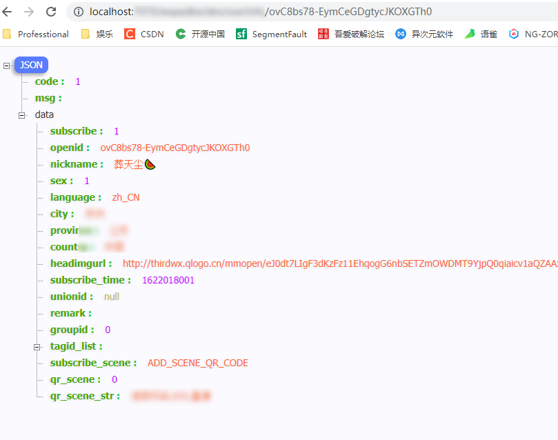 还是补充完整点,下面是通过 openid 请求微信用户的信息,这里使用了我自己的 openid