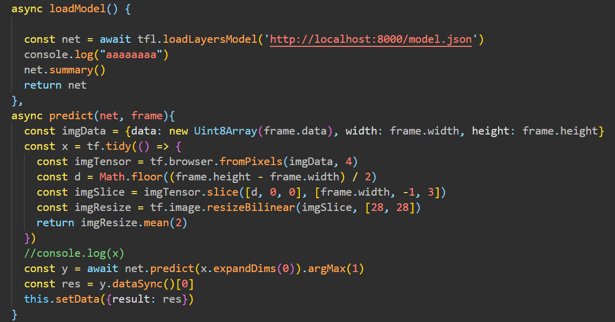 怀疑是原来用的网络太大,就用了教学视频里的mnist,转换之后model.json有3kb,我寻思着这回该好了,没想到还是这个样子