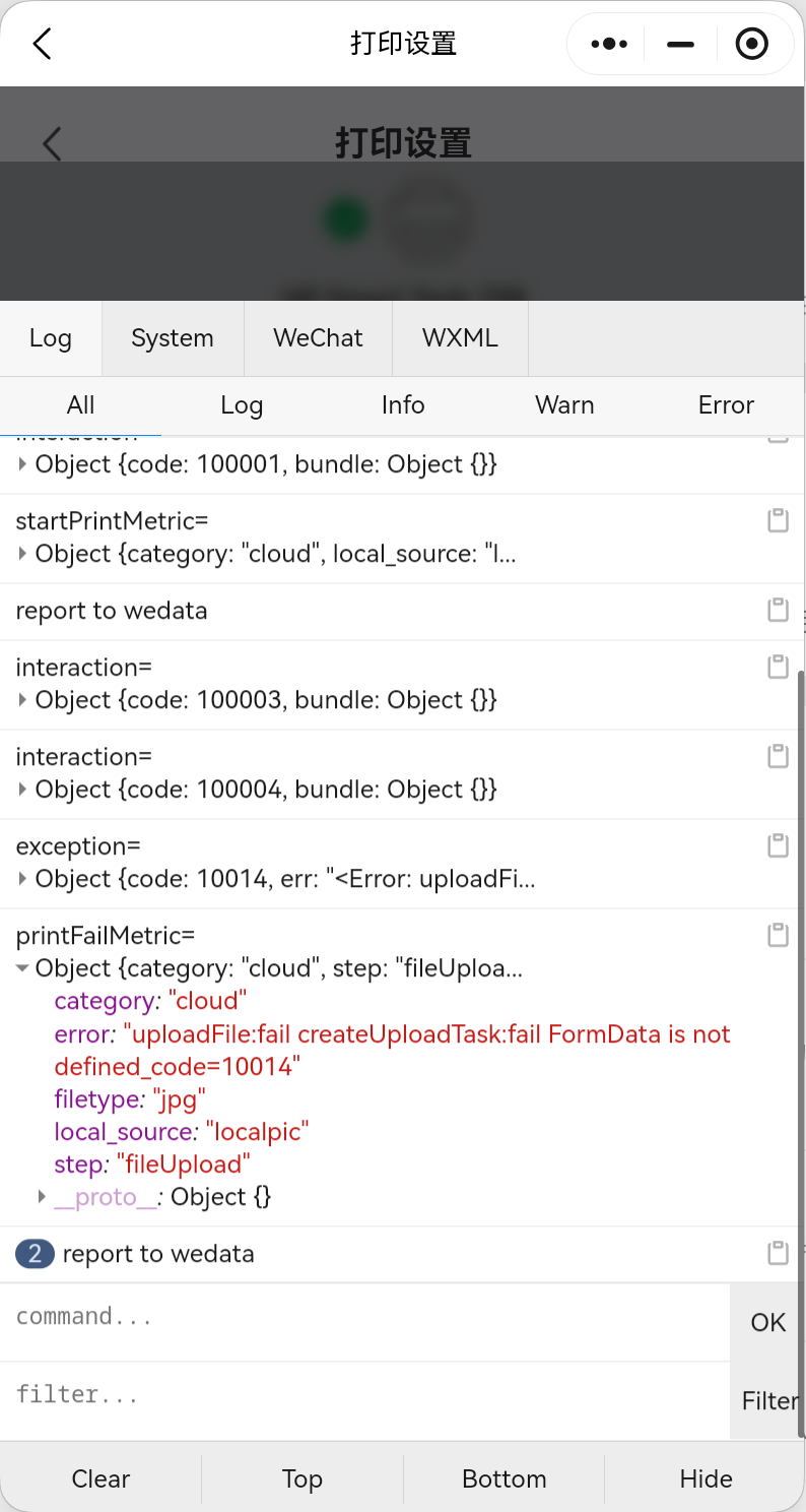 调用 wx.uploadFile的时候报错