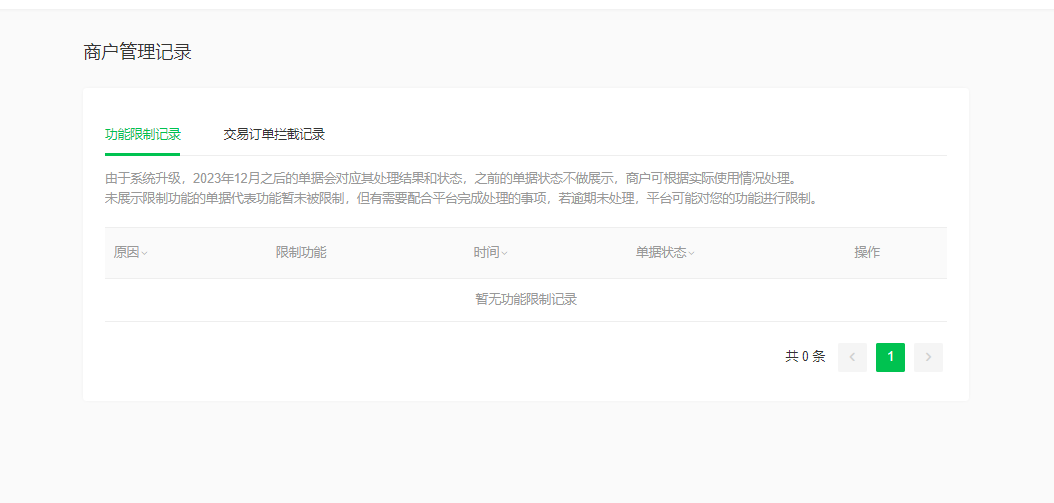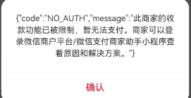 商户号:1521841081,登陆微信支付点击功能限制记录显示是暂无功能限制记录,但是实际收款中提示收款受限,提示如图