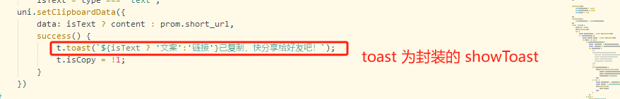 在设置剪切板wx.setClipboardData 时,成功的话用showToast 弹出提示