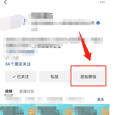 取消显示「添加微信」按钮:前往 企业微信客户端->工作台->视频号,将 在视频号展示「添加企业微信」 里面的成员全部移除即可。