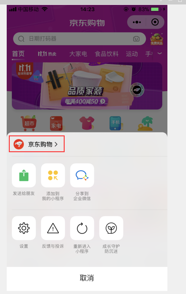 小程序分享的时候怎么现在出现了左上角的东西,这个没有配置去掉的吗?