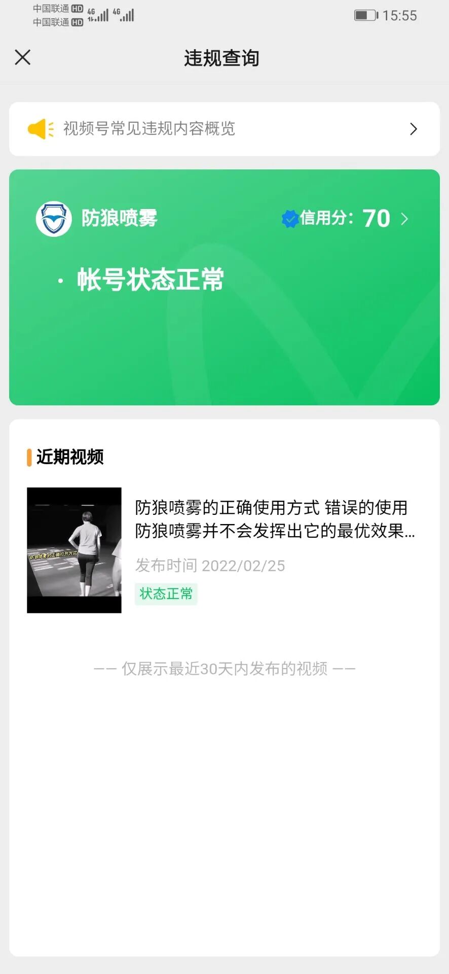 2. 视频号名字 防狼喷雾【后台查询账号状态正常】