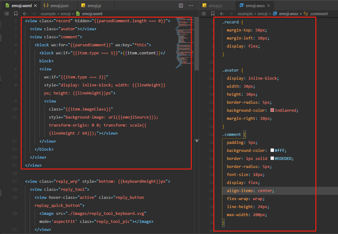 我这边做表情的时候用的是rich-text 组件 内容的话是用wxs渲染出来的内容