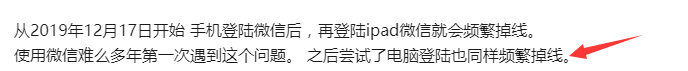 从2019年12月17日开始 手机登陆微信后,再登陆ipad微信就会频繁掉线。