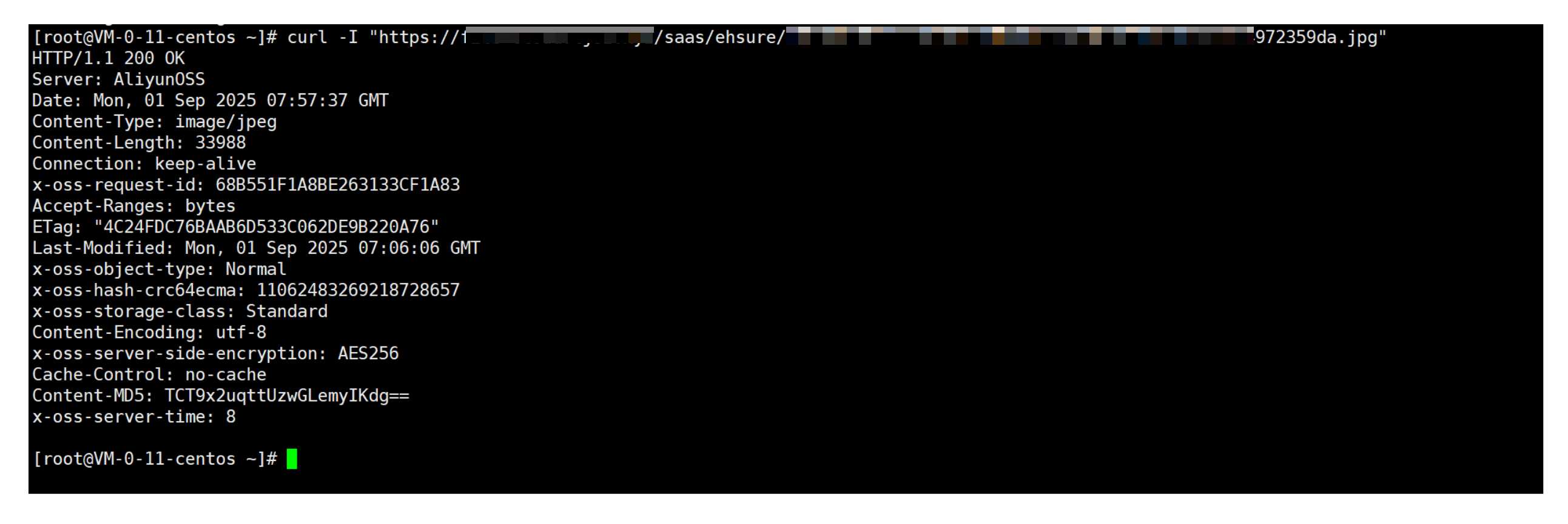 命令验证,该链接可正常返回 HTTP 200 状态码并下载文件。 - 排除了自身服务器网络和OSS权限问题。