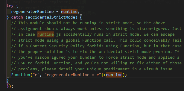 以下是rollup打包async的时候出现的全局赋值代码。因为在严格模式下全局赋值会报错,所以会走Function这种。但是在小程序的话就会报错,因为Funciton没有返回任何东西,纯粹是undefined(runtime)。但是在浏览器上倒是可以,所以可以看出小程序的实现Function并不一致。导致我现在很苦恼。虽然现在小程序支持async,但是我这个小轮子不止用在小程序上。所以有大佬碰到解决的方法吗?
