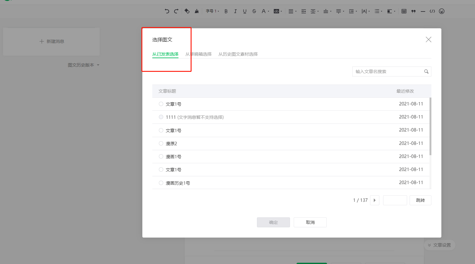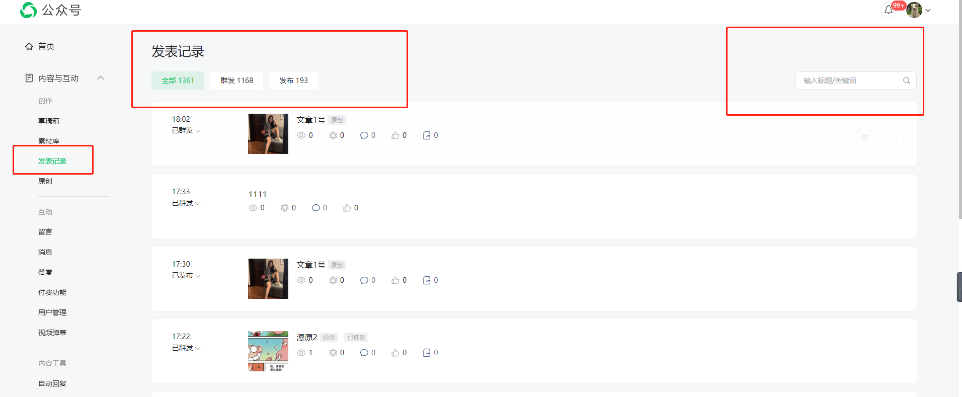 草稿箱中已发表的图文,可以直接在发表记录中查看以及预览