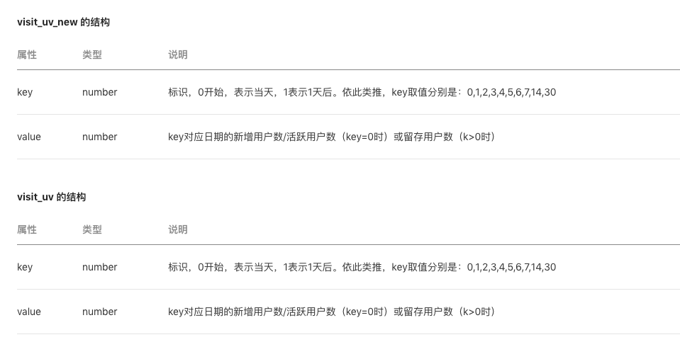 小程序-服务端-数据分析-访问趋势 查询上一日/周/月的数据,返回内容只有key=0,没有大于0的数据?