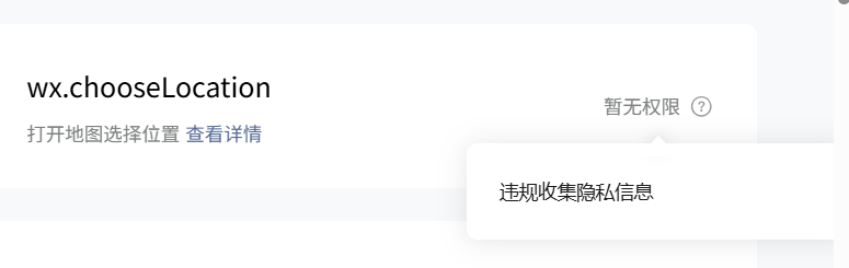 你好,可点击暂无权限后面的问号查看具体原因,若是“隐私接口权限被回收”可查看问题排查指引文档:https://developers.weixin.qq.com/community/develop/doc/00062a6d514c88baacdf52e8a56009