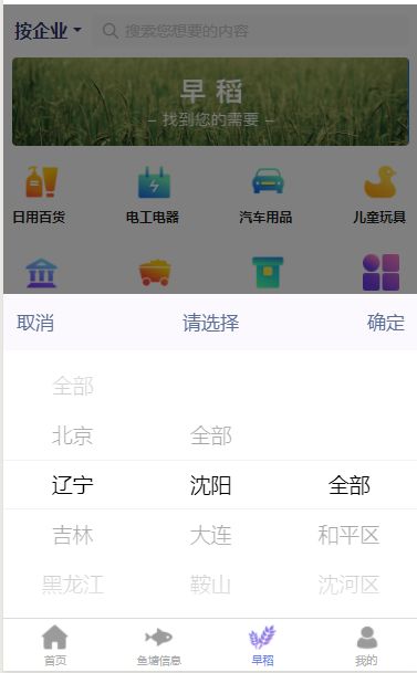 enablePullDownRefresh:trueHTML 结构<picker-viewclass="picker_box"indicator-class="selected"value="{{cityValue}}"bindchange="cityChange"><picker-view-column><viewwx:for="{{provices}}"wx:key='*this'>{{item.label}}</view></picker-view-column><picker-view-column><viewwx:for="{{urban}}"wx:key='*this'>{{item.label}}</view></picker-view-column><picker-view-column><viewwx:for="{{area}}"wx:key='*this'>{{item.label}}</view></picker-view-column></picker-view>pick-view的处理 主要是在原始数据添加全部选项