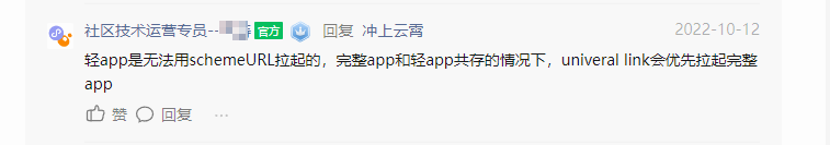 开发了苹果轻App,想在轻App页面中实现跳转至微信小程序功能,跳转失败,并报错: