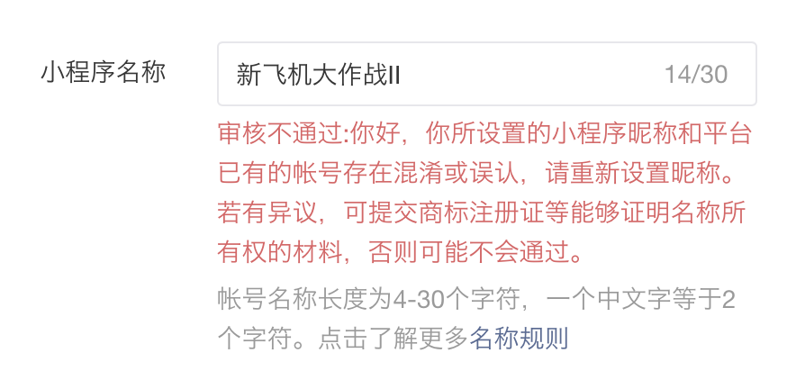小游戏注册时,使用软著的名字仍然提示无法使用.
