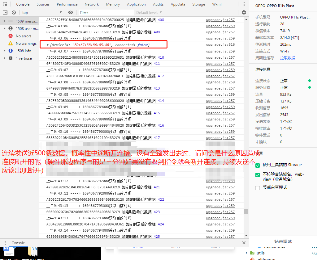 我也遇到这个问题了,每次发送数据到4%,蓝牙就自动断开,请问怎么解决的呢?