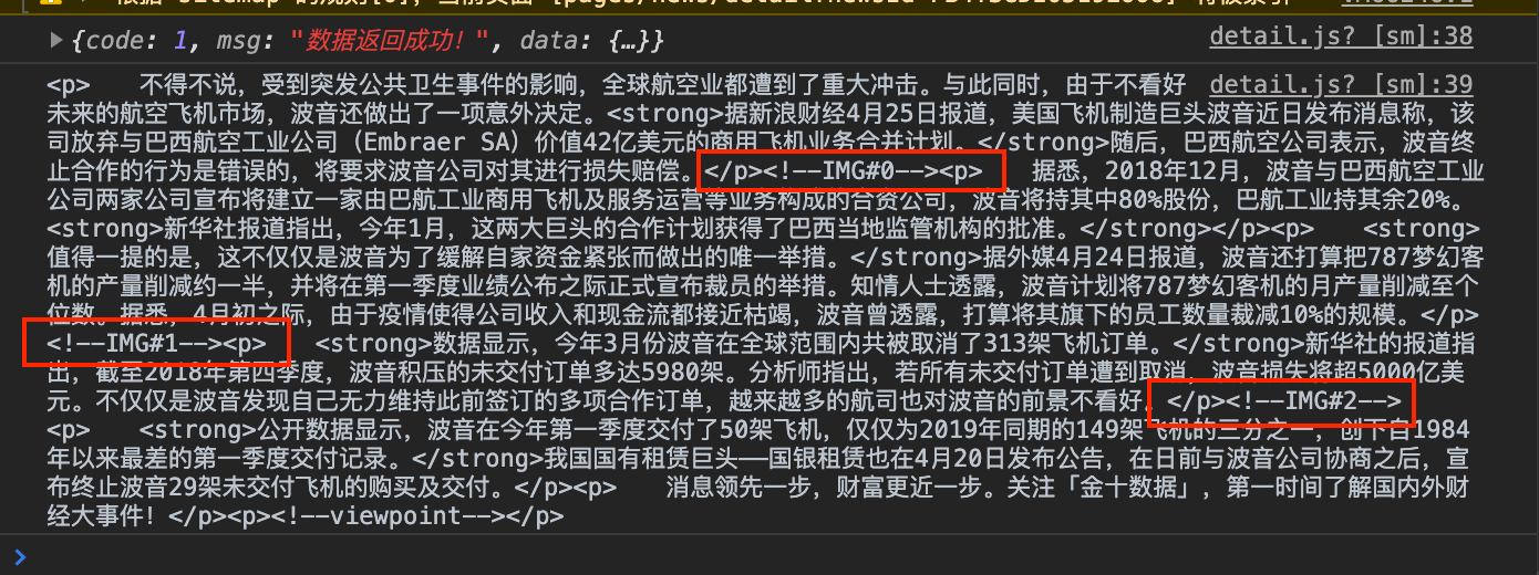 第一张图是后端返回的文本,里面有</p><!--IMG#0--><p>、</p><!--IMG#1--><p>这样的信息,明显是在该处展示图片。