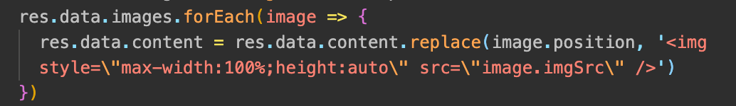 var imgs = res.data.images || [], content = res.data.content||'' for(var i in imgs){ content += content.replace(new RegExp(imgs[i].position, 'g'), '<img style="width:100%;height:auto;border:none;" src="'+imgs[i].imgSrc+'" />') }