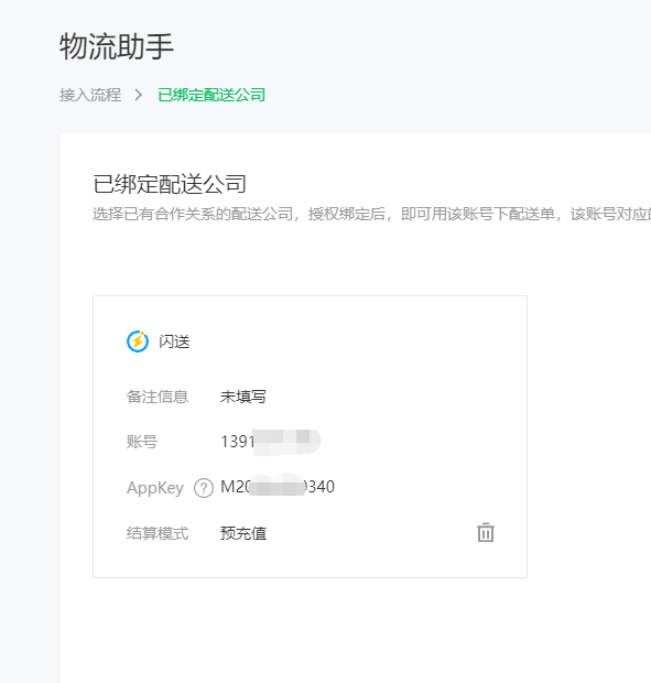 微信小程序后台 阐述是 该Appkey即为即时配送Api中的shopid