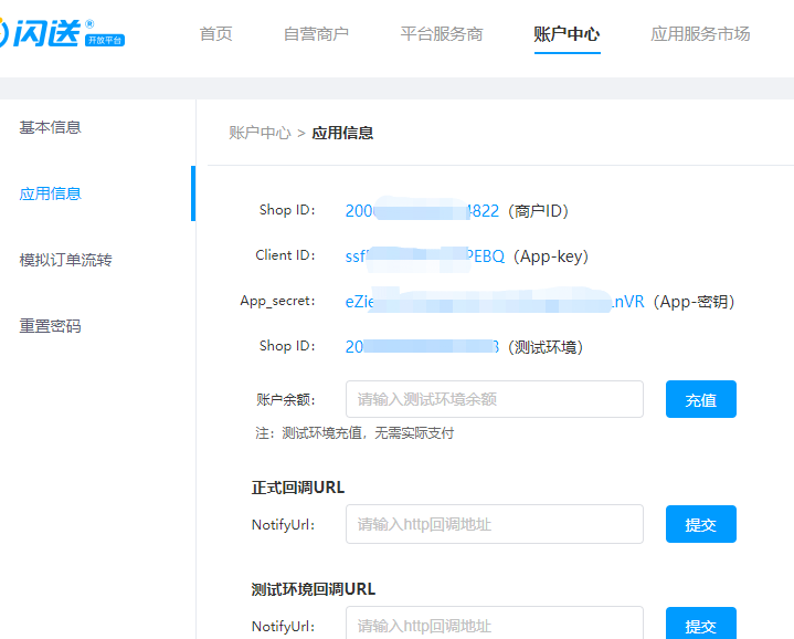 而我的闪送开发者id下的 shopid是