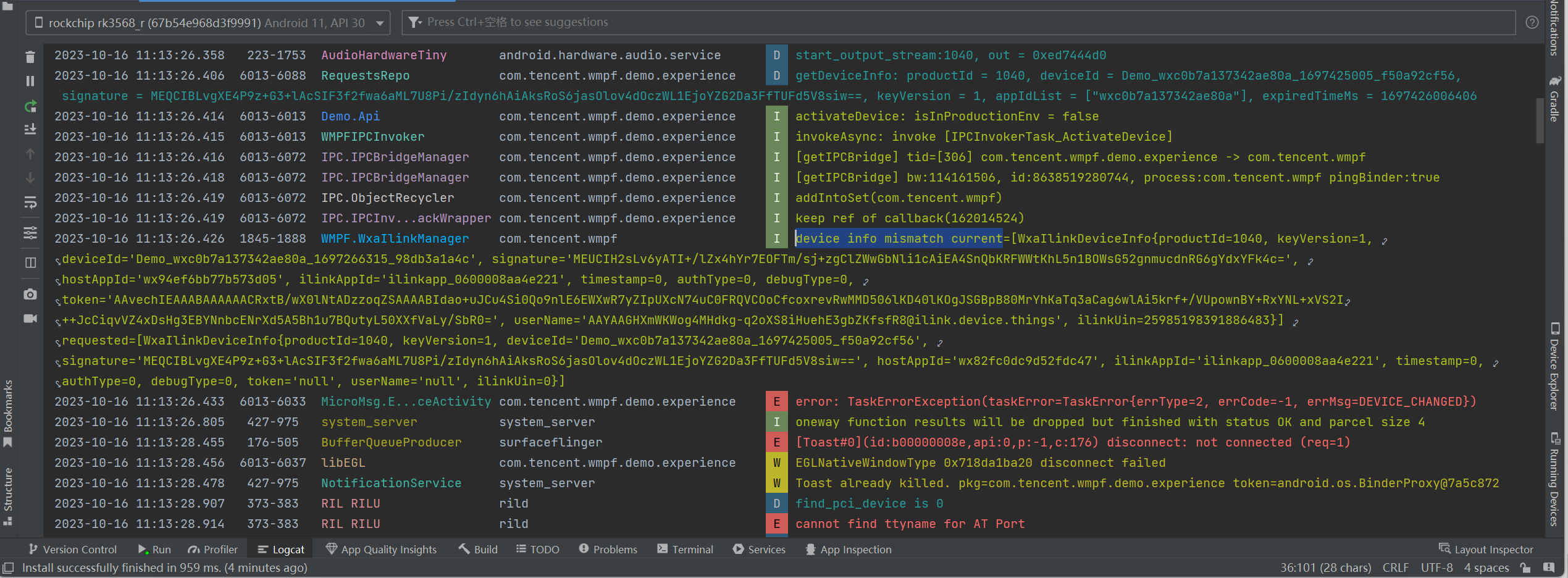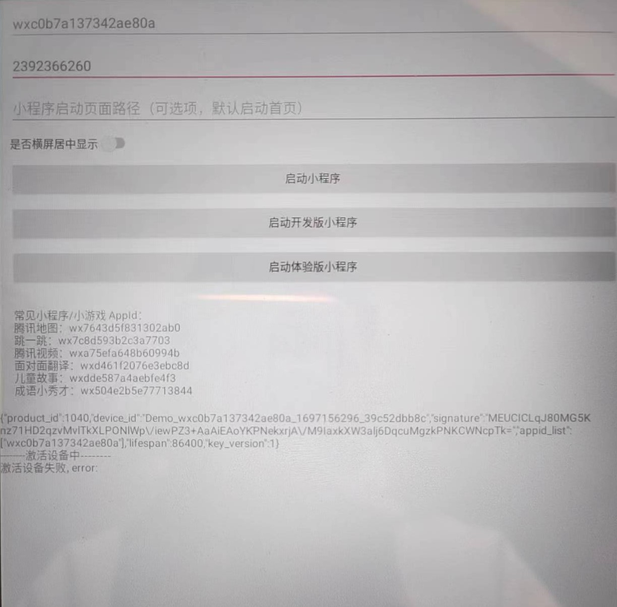 WMPF2.0版本官方示例APP,无法正常唤醒小程序,提示设备激活失败,