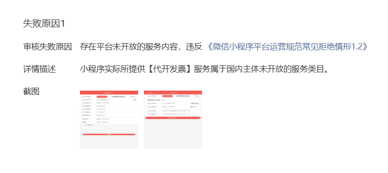 您好,我们做的小程序并未提供代开发票的功能,只是提供的用户提交抬头功能,每次提审都给驳回,到底啥情况?
