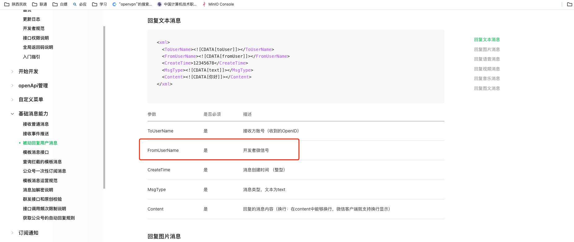 公众号被动消息进行回复的时候,FromUserName字段传入开发者微信号无法正常回复。这个地方需要使用微信公众号的原始id才可以正常回复