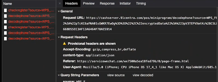这是真机请求,全都挂掉了。开发工具调试没有问题。