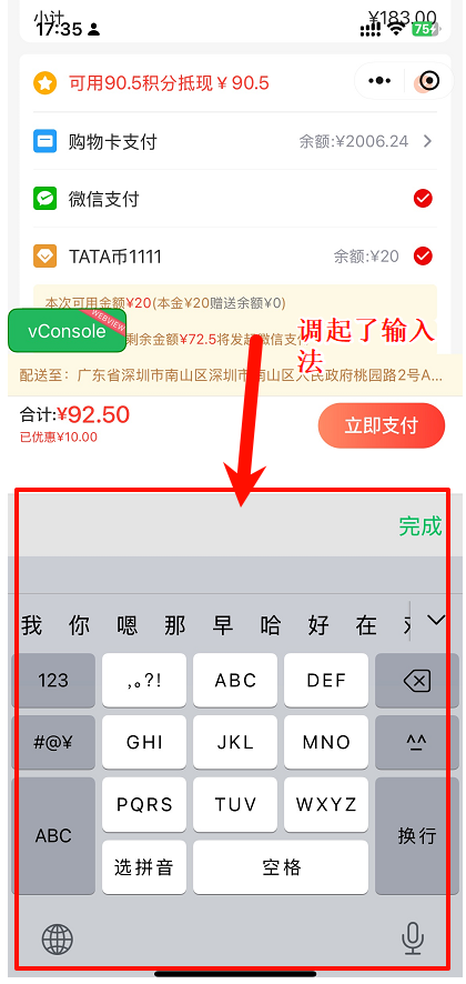 当备注的输入框滚动到ios系统的 底部区域部分,快速点击底部安全区域部分,就会调起输入法,目前判断是 安全区域 有穿透到底部输入框导致调起了输入法,目前尝试了,暂时无法解决穿透问题。